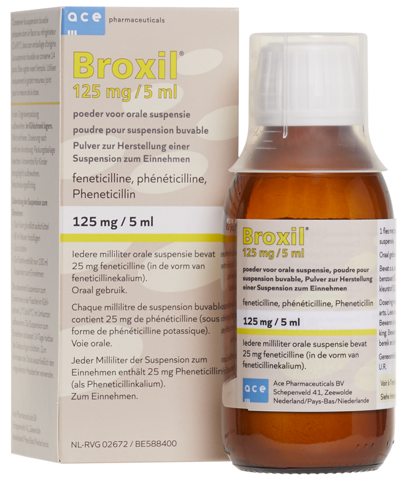 Broxil (feneticilline) is een smal-spectrum antibioticum en bevat het maagzuurstabiele penicilline-derivaat feneticillinekalium. Broxil wordt gebruikt voor behandeling van infecties veroorzaakt door Streptokokken en sommige soorten Stafylocokken.